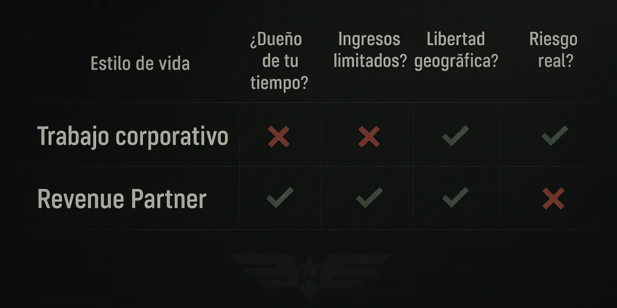 Es que estás atrapado en una estructura que te promete estabilidad pero te roba libertad: horarios impuestos, jefes, reuniones interminables, y un techo que nunca podrás romper.